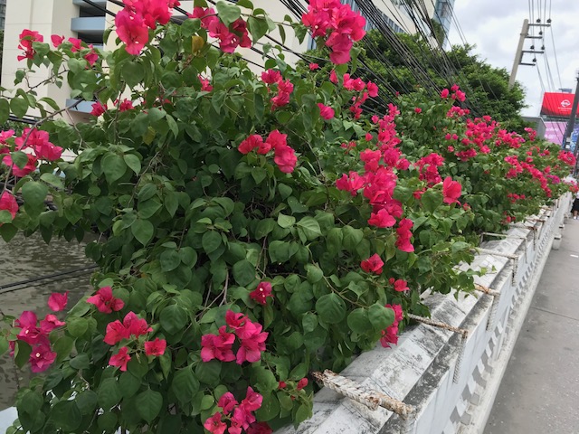 ☆ 会社オフィスから最寄りの地下鉄駅の間は、最も頻繁に往来する通りだが、 その途中の運河にかかる橋の欄干に、『ブーゲンビレア』が咲いている。