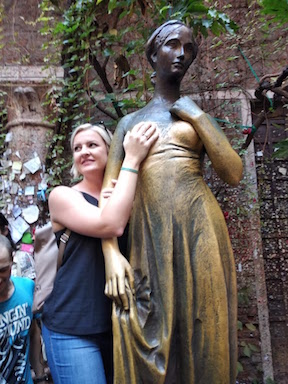写真 1 : イタリア・ベローナのジュリエット像 ☆ 『右胸に触れると幸せが訪れる』と 右胸に触れてる 義理姪