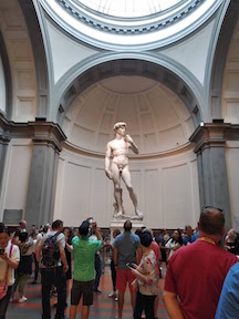写真は ミケランジェロのダビデ像 ☆ 凄い行列で 兎に角 人がいっぱいだった~ 『理想の裸体』? 私も 特別セールだったワンピースを いっぱい買ったので ☆ それなりに身体を引き締めて行かないと・・