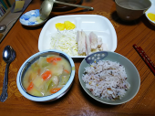 結果 風呂〇 テルミー× 明日の目標はテルミーかな。 【朝と夜】 朝、4時台から料理を作る。 シチューとキャベツ千切りは多めに。夜はそのシチューと千切りと、旦那が2日前に作った鶏むね肉で食べる。 養命酒1杯、同僚の梅酒1杯を飲んだらだるくなったが、なんとか起きて風呂に入れた。 NHKの「ヒストリア」のヘプバーン見てたら湯冷めしたので寝た。