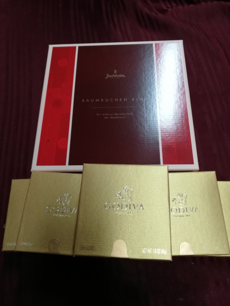 写真 1: 同僚へのゴディバ 写真 2: 貰ったお土産・チョコ 写真 3: ちょっとだけ うっすらと雪が ☆ 先日の雪
