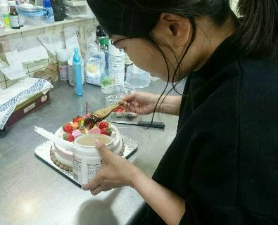 昨日は息子の嫁が孫連れて店に来て、ひな祭りケーキを作りたいと言うので、 孫が寝ている間に材料揃えて教えながら一緒に7号サイズのケーキを作った。