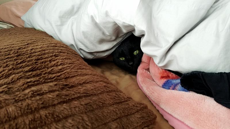 猫の最近のお気に入りは、抜けたあとの彼の布団でねること。 夜中は私の布団で寝てるんだけどね。 あと、チーカマ。とても欲しそうにする姿が可愛いので あげてしまいますが。