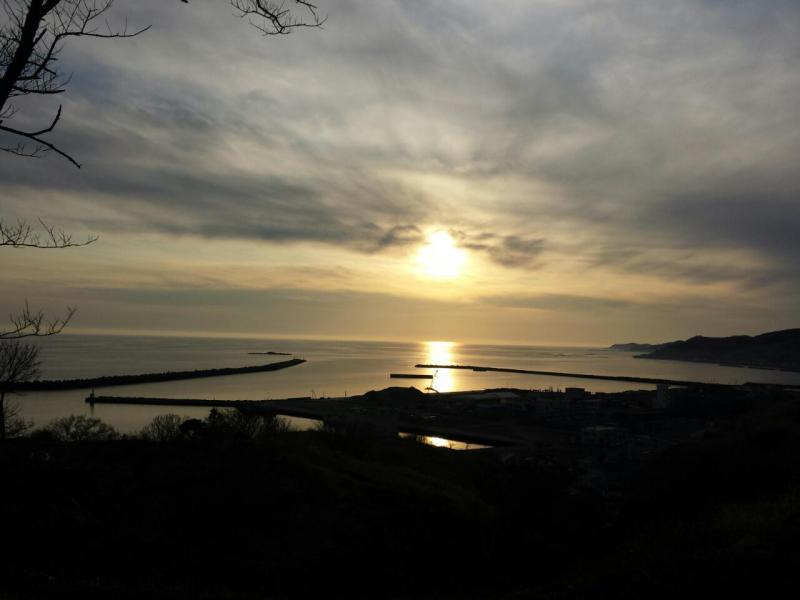 ①土曜のゴルフ場から望む日高山脈 ②日曜のウォーキング途中の高台から望む夕陽