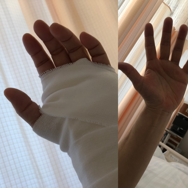 左手だけですよね? 痛いということは神経が通ってるってことで・・・ヒィー(>ω<ノ)ノ お大事に!