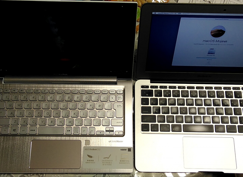 左は2018年末の13.3インチ、右は2013年の11.6インチ、外形はほとんど同じなのに技術の進化なんだな(´・ω・) たしか価格もどちらも7万円台だったはず・・・ キーボードや全体の意匠はやはりMacの方が上だが、最近のMacはマニアも離れているくらいだから・・・