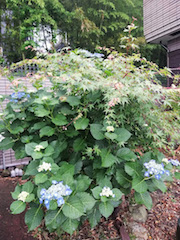 写真1: うちの庭にも 小振りな紫陽花が 写真 2 : 正に 散歩道で出会った紫陽花 写真 3: やはり 散歩道で 見つけた 『柏葉紫陽花」 ☆ 調べると アジサイ属の野生種