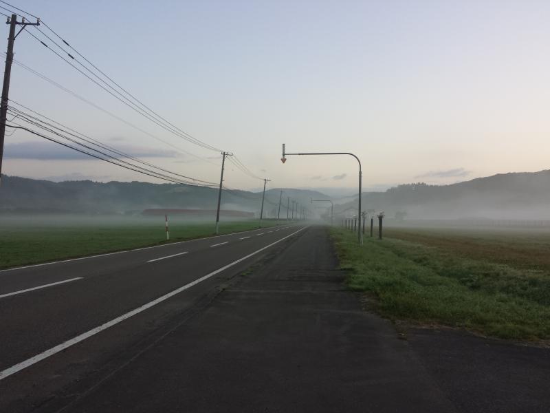 反対側には歩道がないためかなあ? この道路の両脇には牧場やイチゴ農家のビニールハウスがあります。 この直線が終わる地点にあるポストで折り返すと、大体一時間ちょっとのウォーキングコースになります。