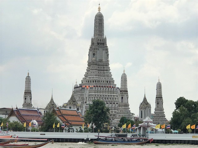 この大理石の寺院は、現場を訪れて目の前で見ても美しいが、 もう一つのポイント、チャオプラヤー川の対岸から、夕日や夜景と共に眺めること。