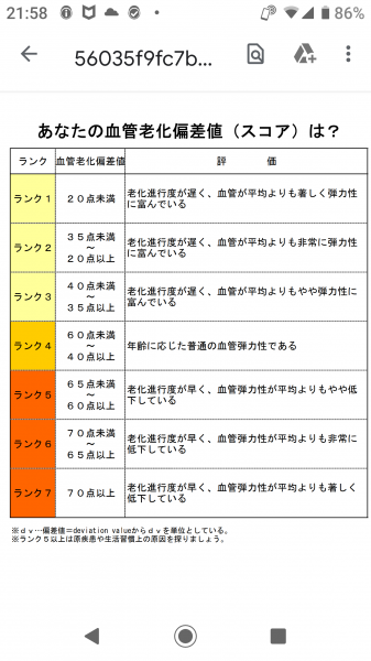 血管年齢、飛びきり良いわけでもないけど、悪くもなく(^o^;)
