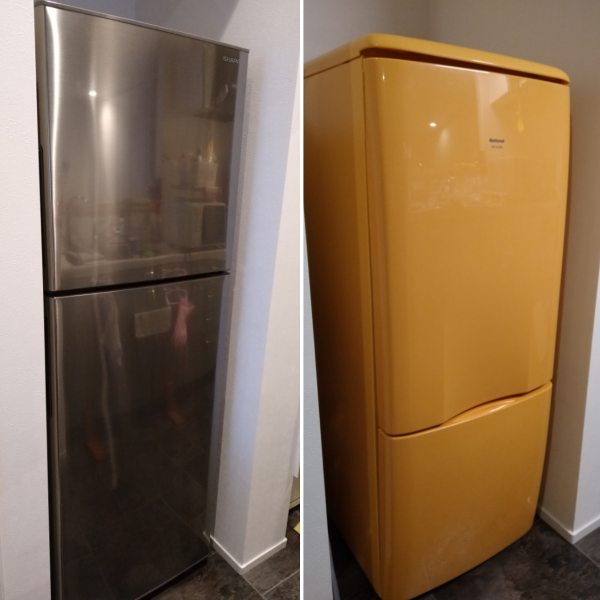 新しい冷蔵庫がやってきました。 大好きだった黄色い冷蔵庫が去って行きました、、、