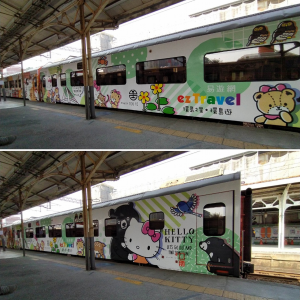 写真は台南駅で。 環島(台湾島一周)の特急列車!日本よりもキティちゃんが人気かも?