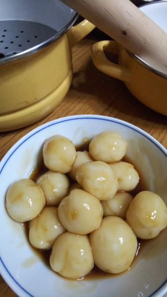 ※ 賞味期限切れの上新粉が出てきた^^;。 「みたらし団子」、柔らかくて味もいいんだけど、何かほど遠い。 (笑笑笑)