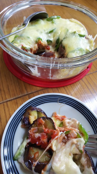 ※ 先日、迷い込んだ道に農家さんの直売スタンドが。 茄子をピザ風に、、、ん? ラザニア風だな♪