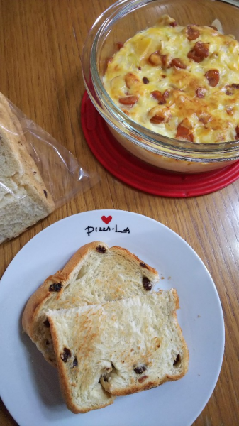 ※ 夕飯は旦那さん作、スパニッシュオムレツとぶどうパン。