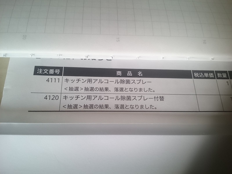 落選ですか 生協で?よっぽど足りないんですね 生協の品物は安心だと聞いたが、中国産が多いとみたおさんが言うが・・・ 多少我が家も、毎週届く生協、カタログ見ませんが、 かみさん付き合い程度に注文しているようです
