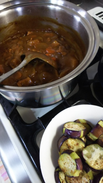 ははは、カレーなんぞ誰にでも出来るが、これは私作。 多分、旦那さんに「茄子も使ってね♪」と言ったら、影も形もなく仕上がってると思う^^。 まっ、偉そうに言っちゃうのはその辺の違いでしょうか。 (笑笑)