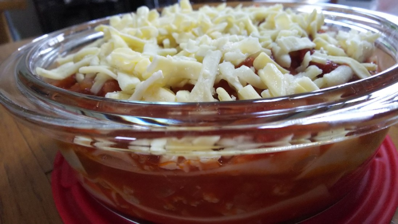 茄子のミートグラタンにするつもりが、腹持ちを考えてラザニアをひく。 茹ですぎてしまい、もはや何層だか分からず。 (苦笑)