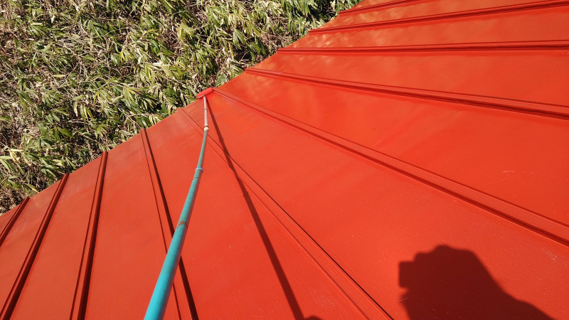 そうですね… ま、自宅なのでココに全貌を載せると自宅公開になっちゃうのでちょっと出来ないですが 部分的になら過去に載せたのがありますよ(^^) 載せておきますね。 写真1は出窓の塗装が終わった所の一枚。 写真2は屋根の塗装完了の一枚! 写真3は屋根の天辺(棟)にまたがって延長棒で塗ってましたよって一枚(笑) 今見ると、屋根は落ちもせず本当によくやったなぁって気がしますよ(^^;