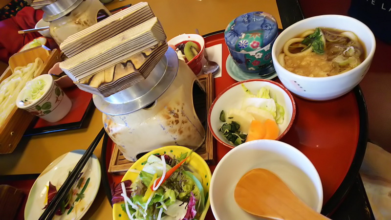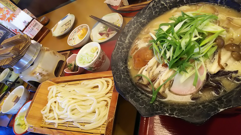ばんどうさん、母と主人はマツタケ釜めし関係。 私は今度は白味噌味のきのこの鍋焼きうどん。 うわぁ、この味、めっちゃ好き~!