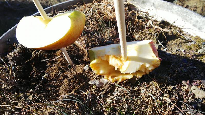 わぁ〜 これも真似っ子したいいいいい! あ、リンゴの串刺しの方ね。 柚子は甘いの作るほどは収穫できなかったけんね。 庭があると、水皿を凍らせたり、リンゴを串に差して土に刺したりできていいなぁ… と思うけれど、 夏には草むしりをして、 雛を狙う猫を追い払って、 水道の防寒をして、 焼き芋もしなきゃいけないんだもんね。 うらやましいばかりじゃないや、大変なお仕事もたくさんある。 お疲れ様です。 今回、わたしも草むしりして、色々考えたわ。 来春にはコッソリと花の種をばら撒いちゃう予定。 誰も何もしない空き地だから、多分大丈夫。 見苦しくなっちゃったら、また私が草むしりしちゃえばいいから。