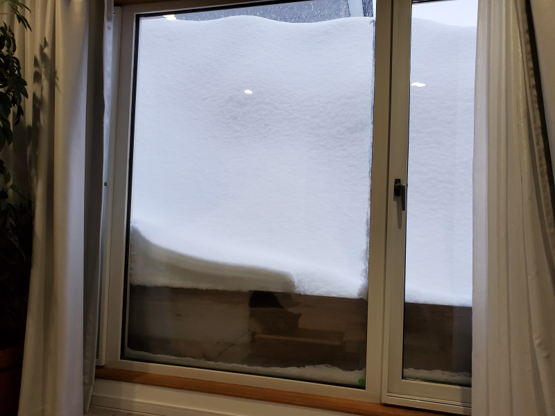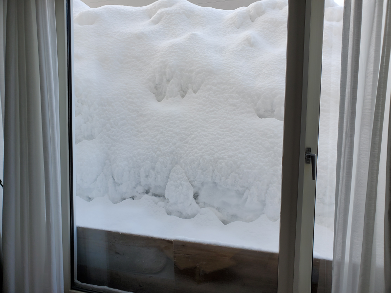 玄関前は旦那さんが除雪して出勤したけど 居間のほうの窓の下は 昨日と比べてもまたガラス防御の板を超えてしまった… こちらからは雪山しか見えず雪が降ってるのかどうかもよくわからない 止まないと、屋根からの落雪も危険なのでこちらの除雪は まだやるなと言われました 1人でやってて、亡くなってる人多いので…