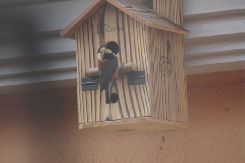 シジュウガラはひとの住居や人工物などでも巣作りするのですが、ヤマガラの場合は樹木でないと入らないと聞いていただけに意外でした。 穴を自分たちサイズに変えている姿は、息子が新居のエアコンを取り付けている様子とダブリましたよ。ほんと楽しみです!(^^)