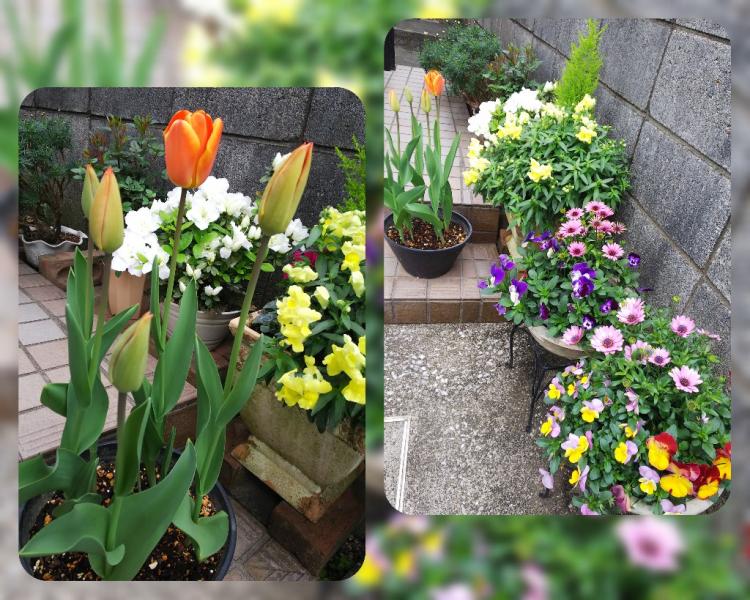 ありがとう~♪ 玄関は日が陰る時間が長いので、春の訪れが庭よりゆっくりです。 今日は全部咲き揃うかな。 奥の2つの鉢は、冬は枯れ枝みたいになるんだけど、春にはたくさんの花がつきます。 (* ´ ▽ ` *)