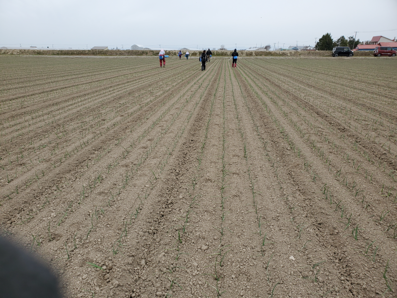 岩見沢もすこし外れるともう畑ばっかりですよ!! 今回もひとつの農家さんで2週間玉ねぎ手伝いですが 毎日10人以上のバイト使ってもそれだけかかるほどの 広さです……こんなにお金かけても元とれるほど 玉ねぎって儲かるのかな?と思ってしまう…
