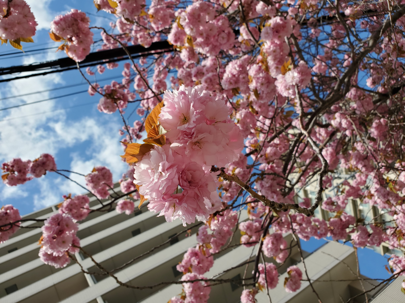 円山の南四条に八重桜がずらーっと並んでる通りがあります