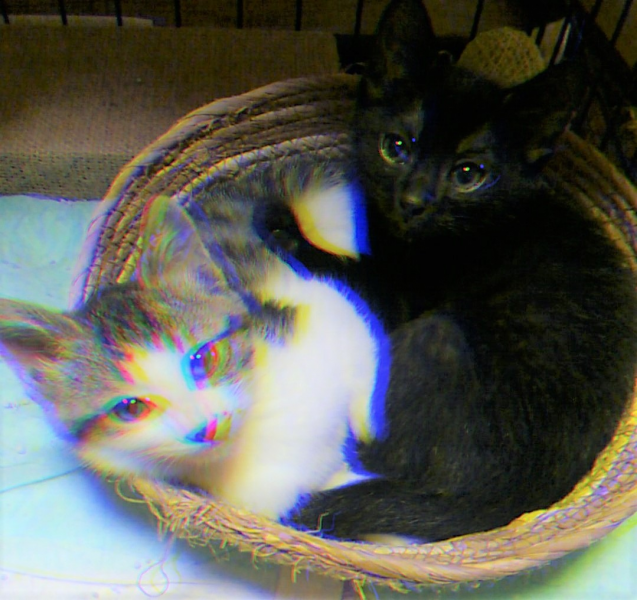 ツチノコ君が入ったら 多分壊れたサイズのカゴ 2匹できれいにカゴ入り。。 普通に撮ると バジルの顔の境がどこ?? 光量上げると ミモザの顔がぼやけちゃう 黒目の黒猫。。暗い所でも見つけにくい ^^;