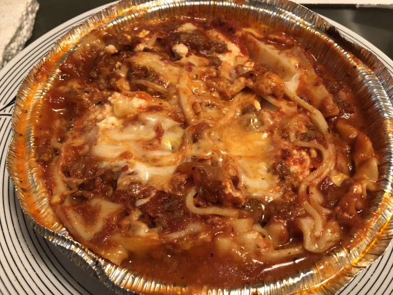 ベジタブルピザ、ガーリッククリームパスタ、ラザニア、野菜サラダ。