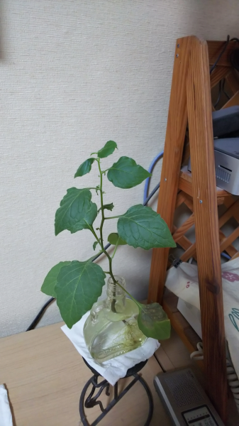 写真2 イヌホオズキ。観葉植物代わりに水栽培しているが、もともと雑草なので結構丈夫。