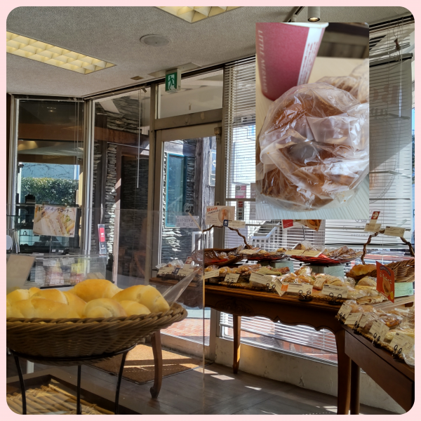 パン屋さんに小さなテーブルがあったので、ひと休み。