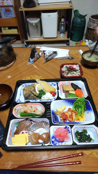 旦那のお母様のお姉様のお通夜会食。コロナ禍なので弁当として持ち帰りになったとのこと。