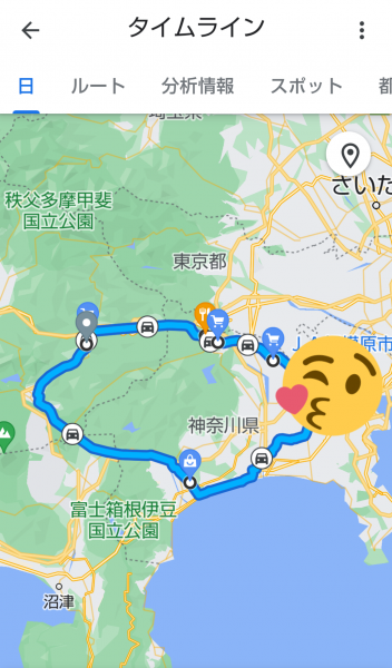 ぐーぐるタイムライン、ウチの超オバカの日がたまにあるよ。 この間なんか、家を一歩も出てないのに、2km先の施設まで行ってるし。 勝手に幽体離脱すんな、っつうの(^O^;) しっかし、momoさん、いっぱいドライブしたね〜。 神奈川周遊の旅\(^o^)/