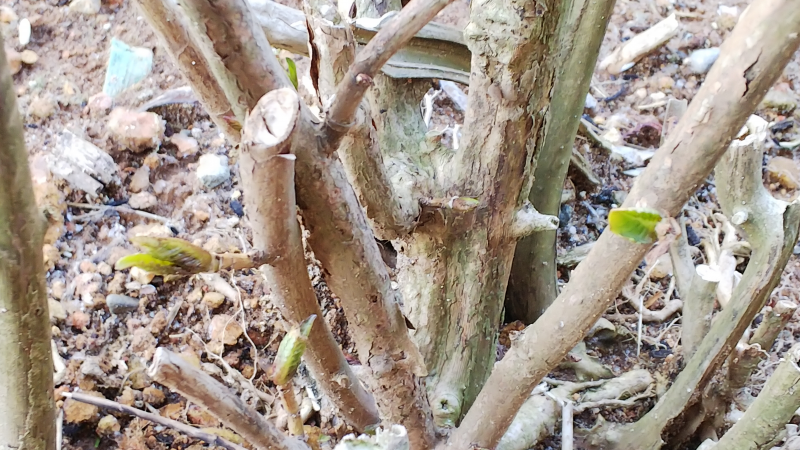 写真1 霜柱 写真2 芽吹いてきた庭のアジサイ 写真3 肉がゴロっと入ったシチューごはん