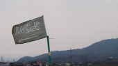 写真1 散歩ルートの家猫たち。気が向くと茶黒のほうは耳の後ろなどを撫でさせてくれる。今日は気が向かなかった模様で、一定以上近づいてこなかった。 写真2 田んぼの一角に立てられた謎の旗。アラビア語のような文字が書いてある。 写真3 ホームセンターで買った白撫子と青いロベリア。