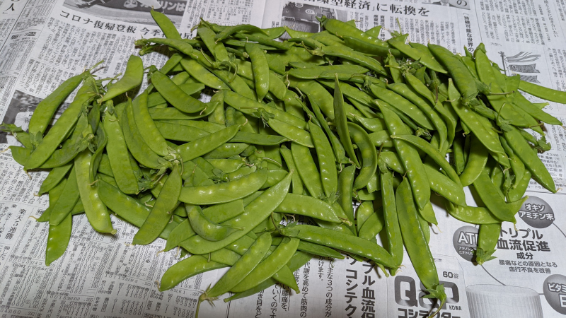 夕方、ご近所さんからサヤエンドウを山程いただいた。 重なるときは重なるなぁ(^o^;)