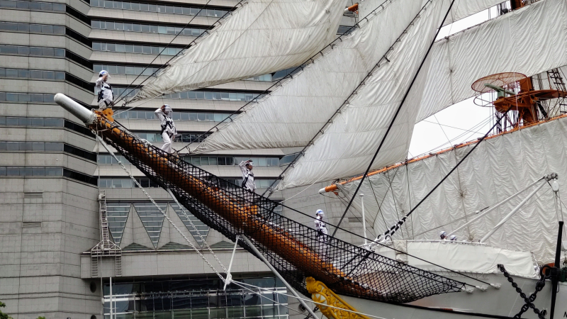 帆船 横浜 絵になるなぁ 海の方から、汽笛が聞こえてきそうだ