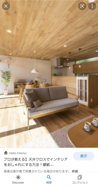 画像はイメージに近いものです 天井の色って考えたことなかったし 今まで友人の家でも見たことないから面白いかなと思いました ただ、低くなって圧迫感が出る可能性もありますね