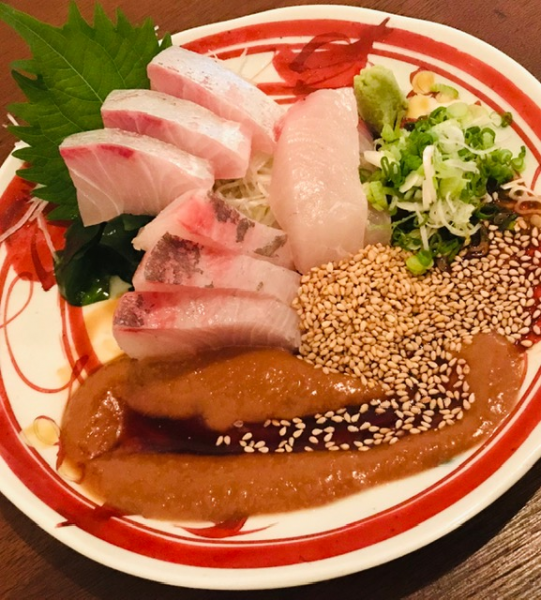 新鮮なカンパチに、ごま醤油のタレ。
