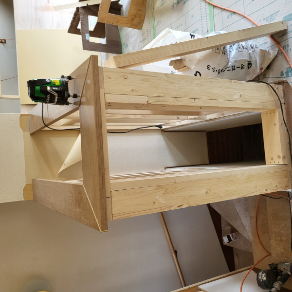 そして気に入らなかった手すりを壁に変えて貰う件は 進んでるんですけど…この上の板の色、おかしくない? (画像がまた横だった…) 手すりの色が気に入らなくて変えるのにまた同じような 板の色にしたらダメだよね? 床と天井がもっと濃い目の茶色になるんだから ここだけナチュラルな色、おかしいよね??? それを伝えたら、そうですよねーそっかーこれも変えますって。 でもさ、これ色とか何にも聞かれてないのに進んでたんですよ。 今、知ったからすぐにやり直しできるけど 壁貼ってたらやり直しもかなりの手間になったよね???