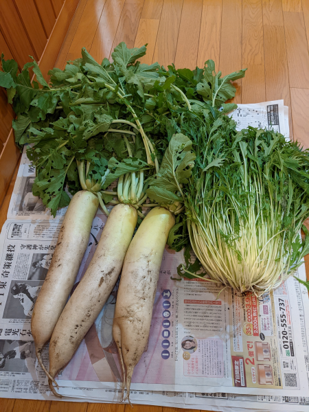 午後からいらしたお客様、どか~んと野菜を持ってきてくれた。写真1