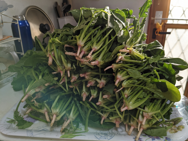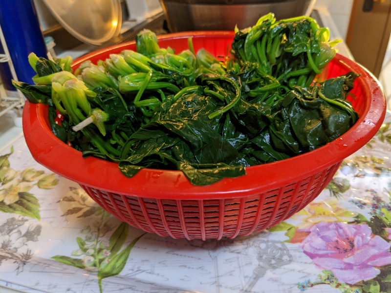 夕飯用にごま和え。明日の料理用にちょっと残して、残りは冷凍庫行き。