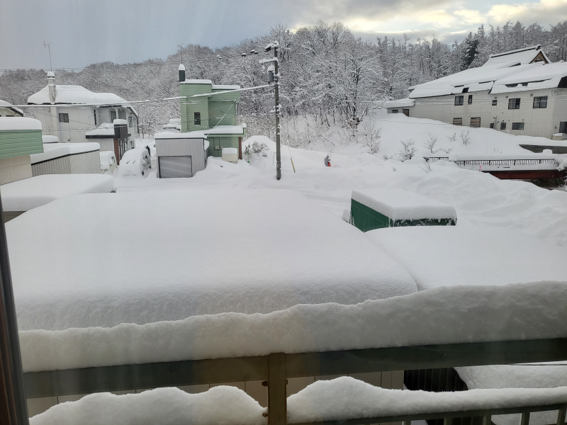昨日、そこそこ降ったけど今日も積もったので 二日間で50センチくらい降ったのかな 気温が低いのでサラサラなんだけど… 明後日からまたプラス気温になるらしく少し溶けそうですね 日中とけて、それが固まったらガタガタなって 余計に走りにくくなるんですよね