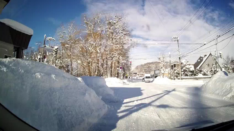 外の世界はこんな感じです ワクチン打つときに撮ったので2日前か この道路は、市役所通りと高校通りのぶつかるバス通りで 大きい道路なのでまだ広いです 雪山の高さはまだ序の口で家が見えなくなるほど高くなりますよ