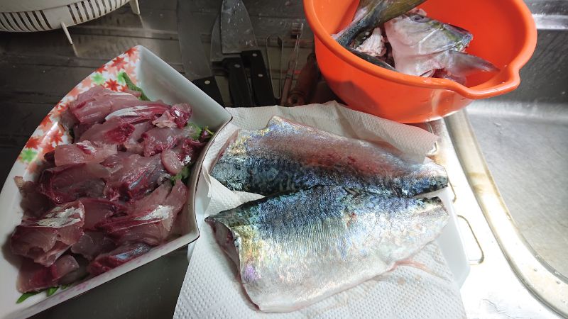 そろそろ旨い魚が食いたい‼️って思っていたら、太公望の常連さんのお裾分け。加太沖で本命の鯛は釣れずハマチと大サバ(40cm)がよく釣れたそう。ハマチは当然お刺身に、サバは塩して後はヨメサン任せ。新鮮だから何しても美味しいけどね。