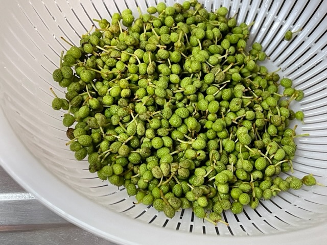 以前近くのスーパーでも見かけたが、 そのうち仕入れなくなっていた山椒の実。 昨日、遠くのスーパーで見つけて大喜び。 今日の買い物で青梅も買ってきた。 それぞれ保存用に下ごしらえ。 ラッキョウは昨年のがまだあるので今年は休み。