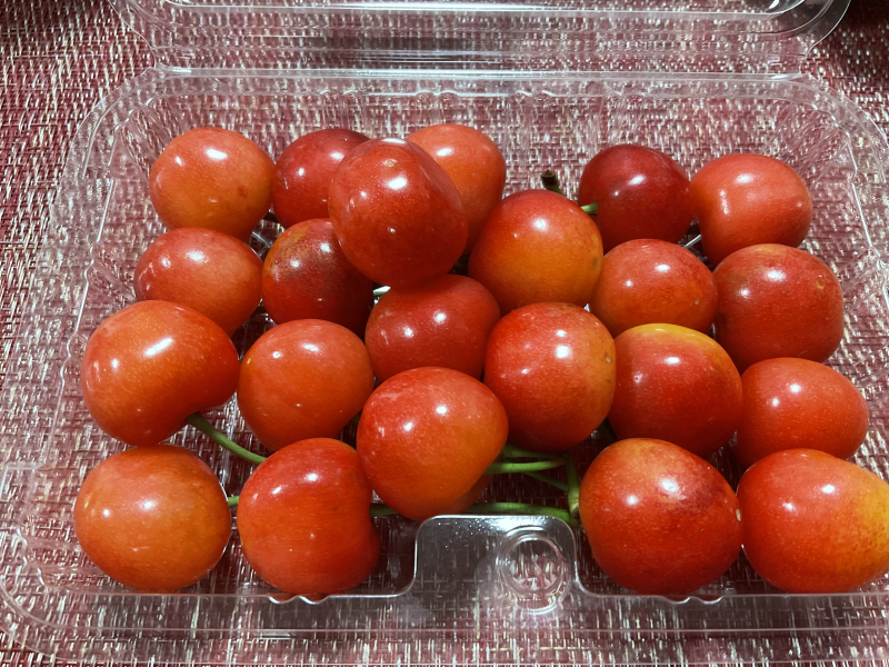 なんかね、コレ私の生まれた地元産って書いてあって思わず買ってしまったのよ。あー思い出した。さくらんぼ採りに行ってシバ虫に刺されてお兄ちゃんにおんぶされて帰ってきたこと( ̄∇ ̄)